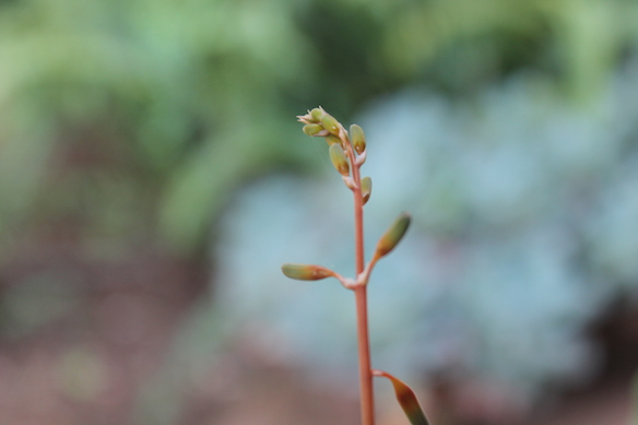 I acquired my Gasteria in February this year (2015) by way of an on-line auction on FaceBook and after winterizing inside my house for two months, I was thrilled to discover a small! flower soon after I put it outside at the beginning of spring. I juts can't wait to see it fully open!
