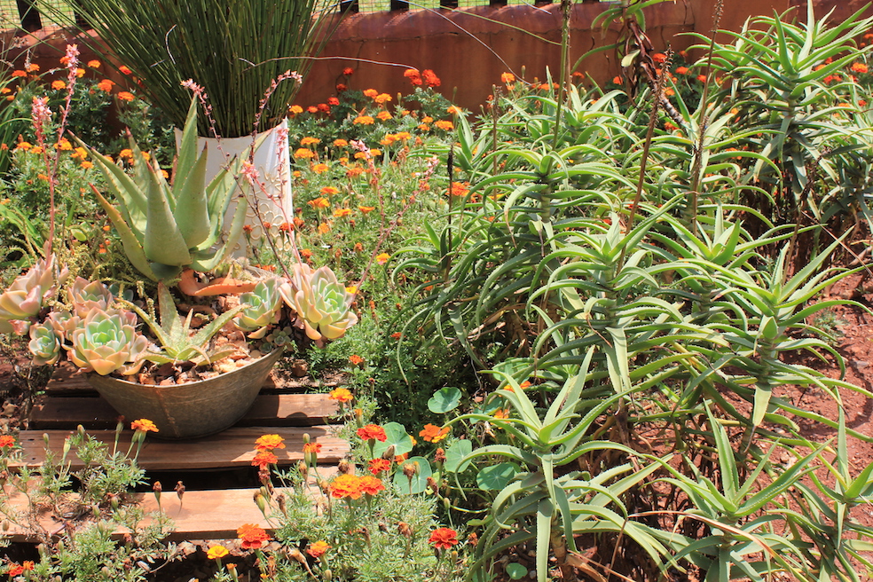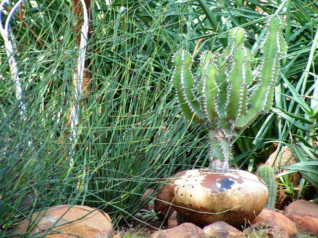Another problem is the beautiful, rich, deep topsoil l have in my garden. That brings it's own set or problems - the soil is extremely porous and well-drained and even heavy rain tends to sink right down to well below where the plants can get hold of it (most succulents and cacti have very shallow root systems).